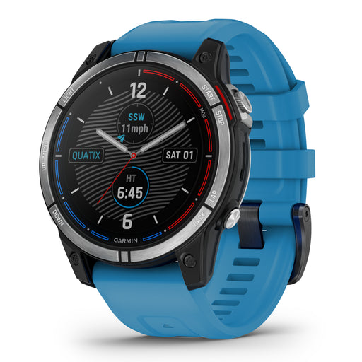 GarminQuatix® 7 imponerar inte bara med sin prestanda, utan även med sin tåliga och sofistikerade design. Den stora 1,3-tums skärmen med rostfri stålram...
