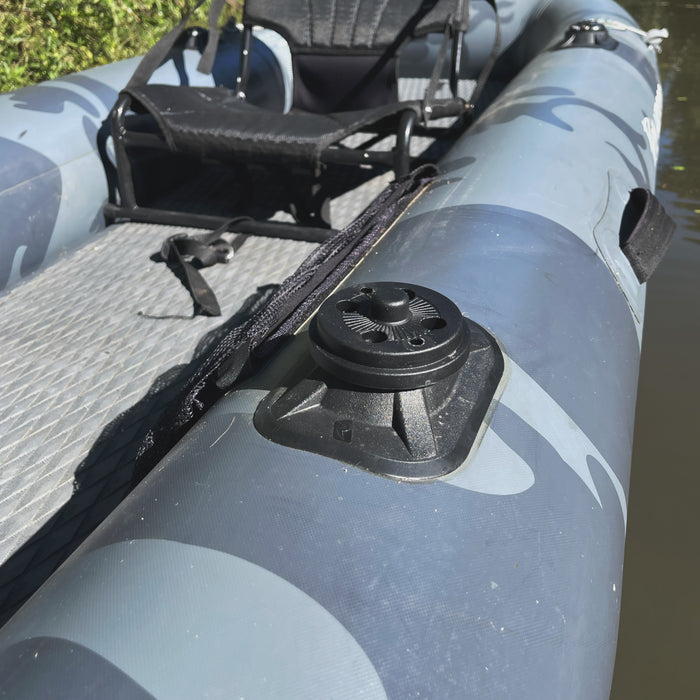 För uppblåsbara skrov där det inte är möjligt att borra hål för montering är HEXX RIBPort utformad för att smidigt och säkert limmas fast. Detta fäste fungerar utmärkt med HEXX-serien från RAILBLAZA. Du kan säkert och stabilt fästa ekolod upp till 16" med HEXX Rotating Platform. Upplev oöverträffad styrka med HEXX Rod Holders, perfekta för dina fiskebehov. HEXX Live Pole 60 & Live Pole 30 gör det möjligt att enkelt placera och styra en live-transducer. Allt fästs och lossas från HEXX RIBPort Mount utan verktyg.