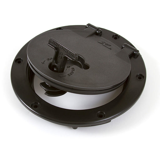 HobieHatch 6" Twist-N-Seal En enkel vridning av handtaget så öppnas/stängs luckan, som även är sitter fast med gångjärn så det inte går att tappa locket...